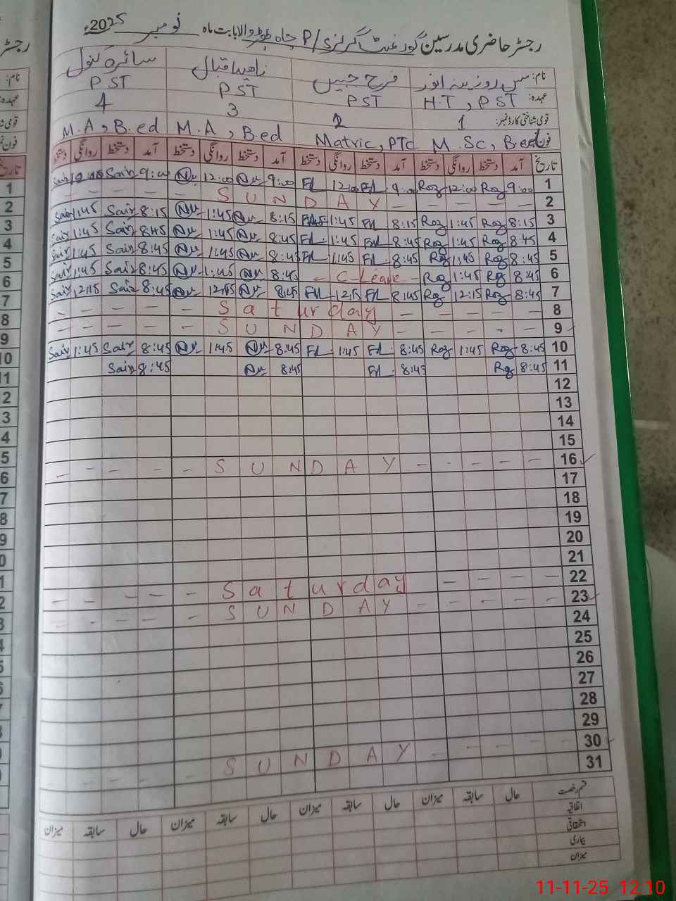 | CNIC | Full Name | Designation | R/C | Absence During Last Calender Month |