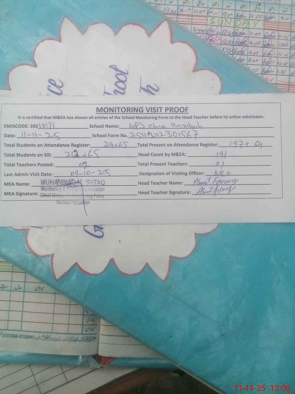 | EMIS Code: 39210171 | Name of School: GPS CHAK KAMBOH PO PAKPATTAN | |||