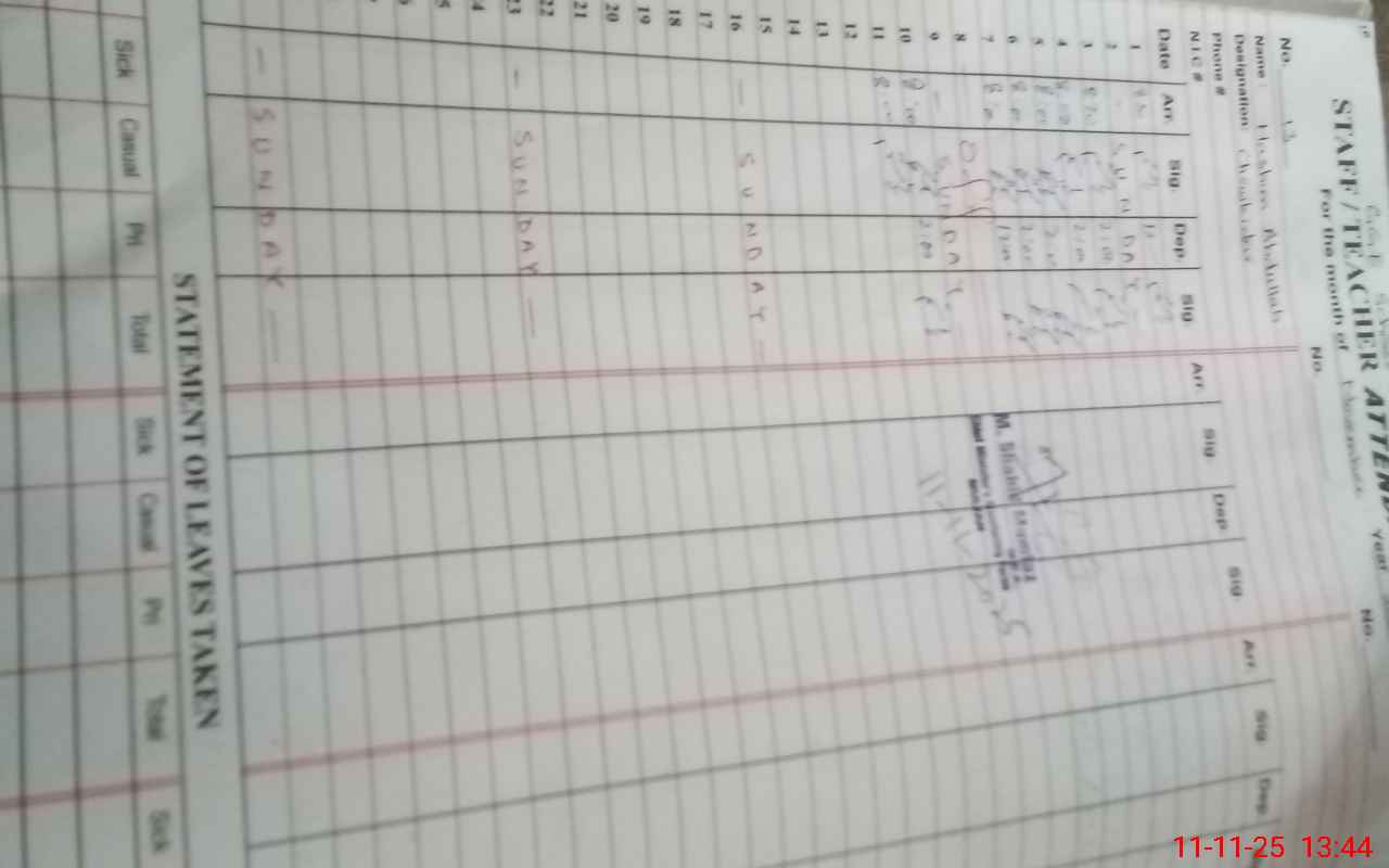 | Name: Sh**** Zu**** Designation: (School Headmaster's/Headmistress's) S.S.T.General Phone/Cell Number: 03**** |