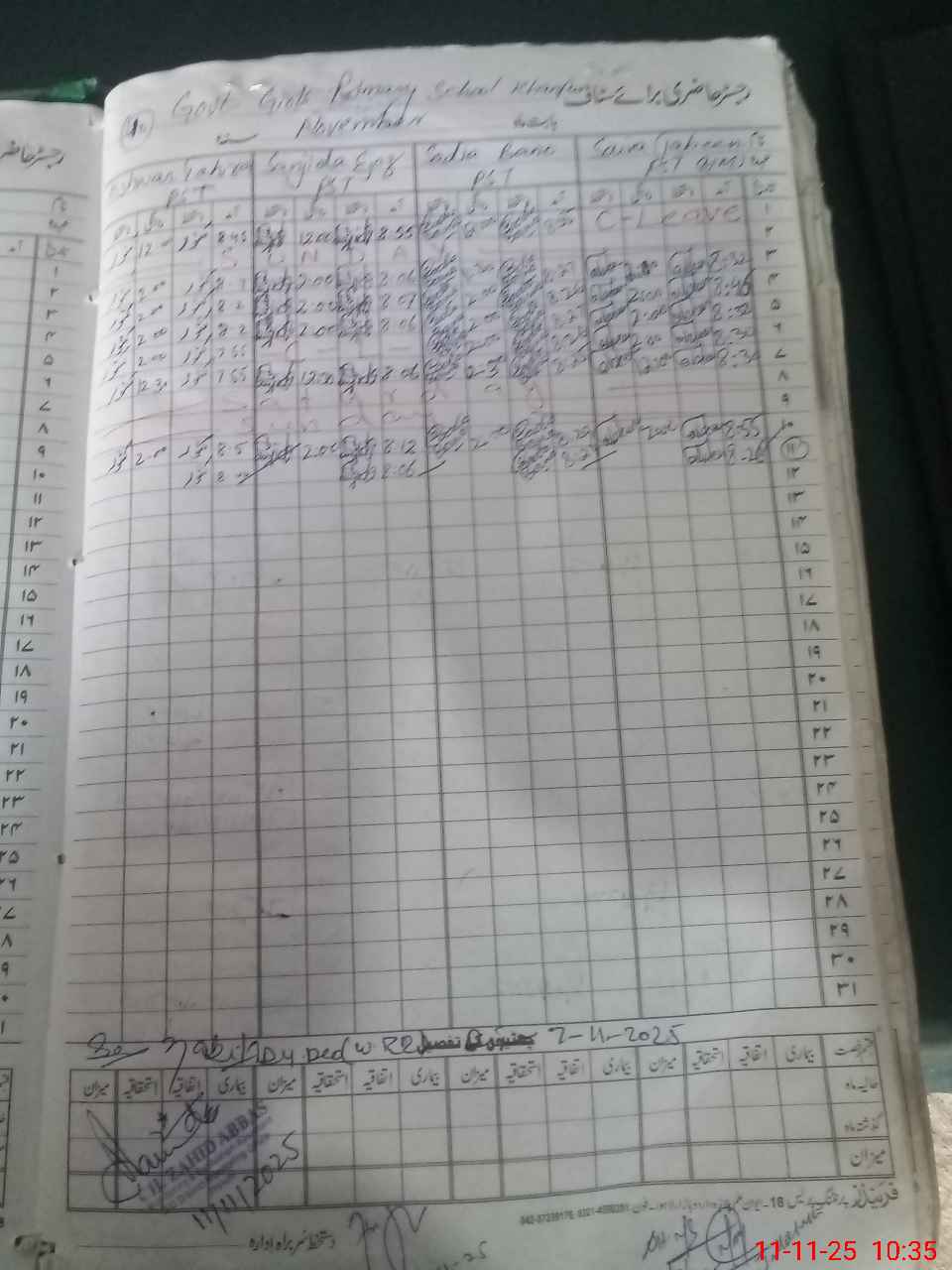 | CNIC | Full Name | Designation | R/C | Absence During Last Calender Month |
