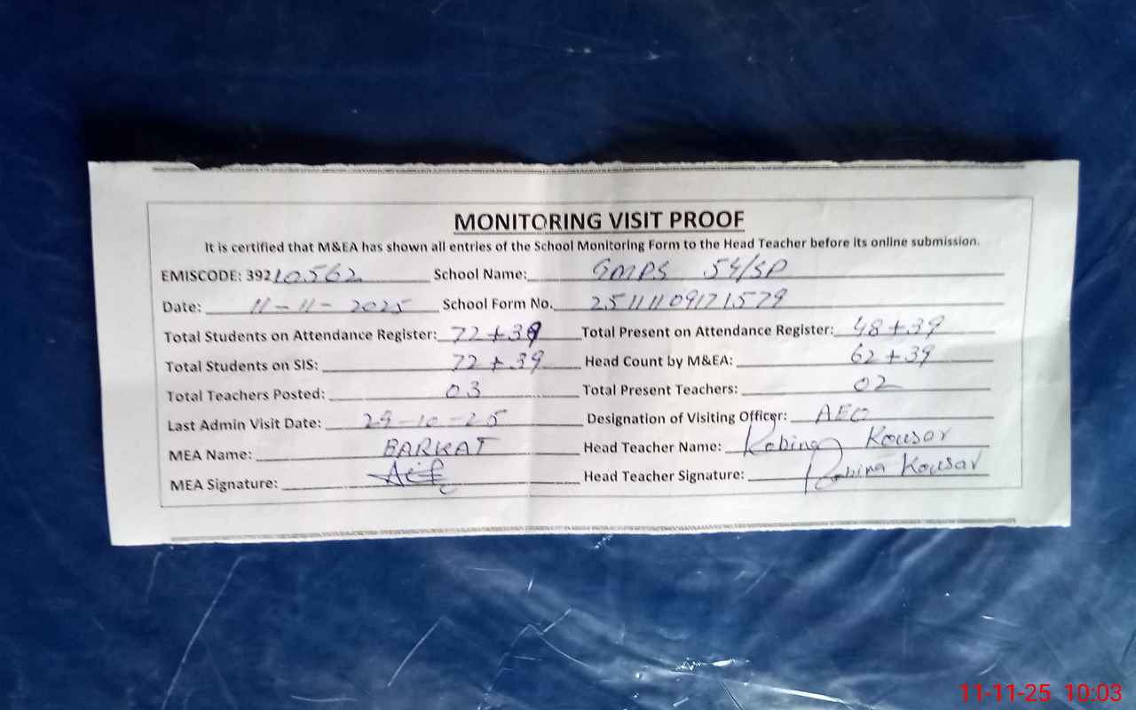 | EMIS Code: 39210562 | Name of School: GMPS 54/SP | |||
