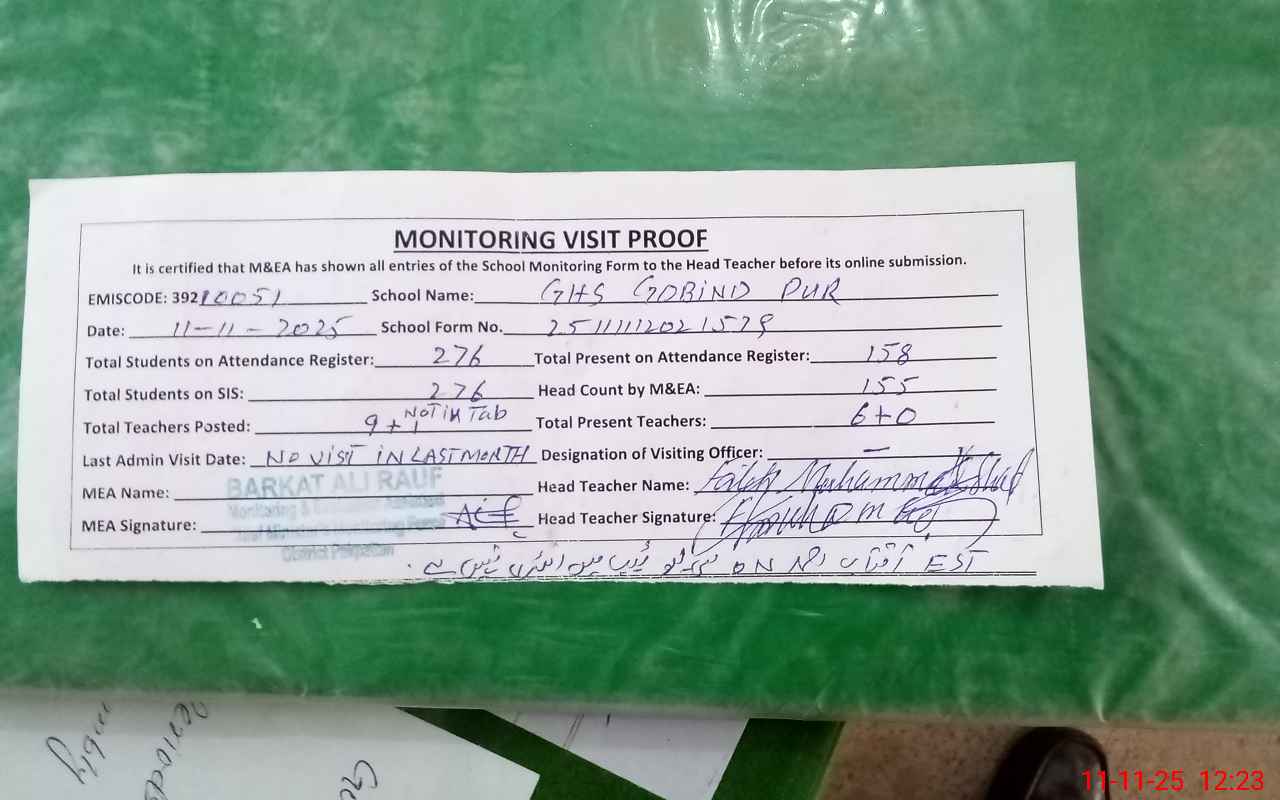 | EMIS Code: 39210051 | Name of School: GHS GOBIND PUR P/O GOBIND PUR | |||