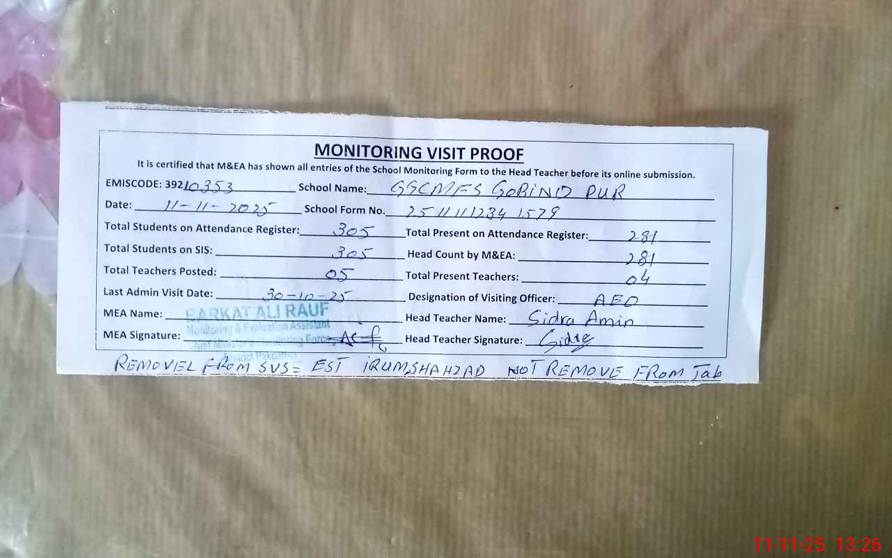 | EMIS Code: 39210353 | Name of School: GGCMES GOBIND PUR | |||