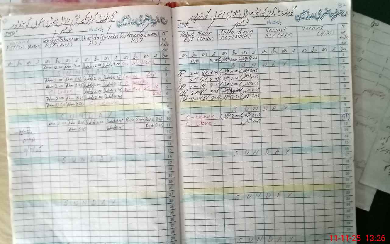 | CNIC | Full Name | Designation | R/C | Absence During Last Calender Month |