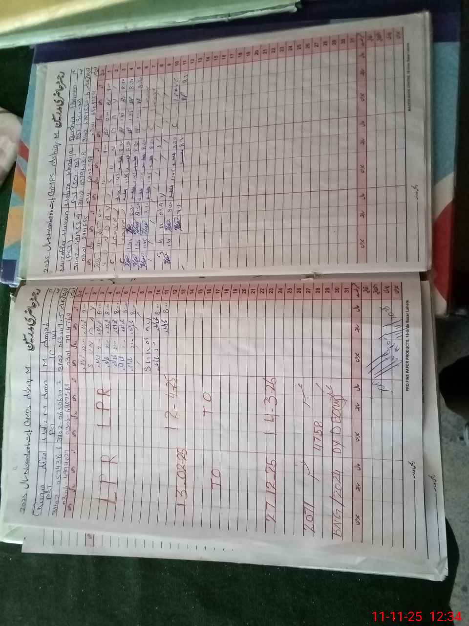 | CNIC | Full Name | Designation | R/C | Absence During Last Calender Month |