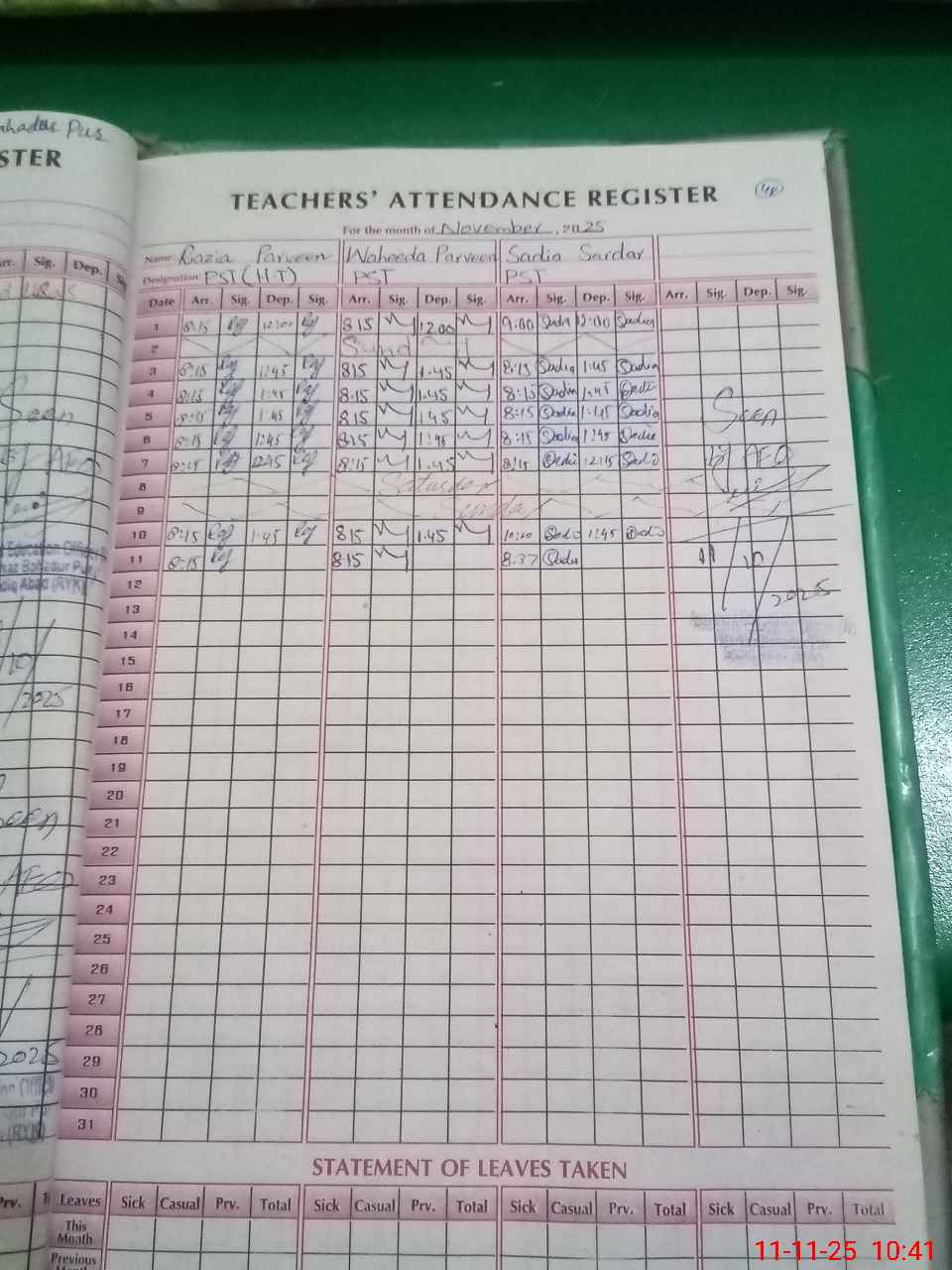 | Leave | Duty | Absent | Maternity | Medical | Ex- Pak |