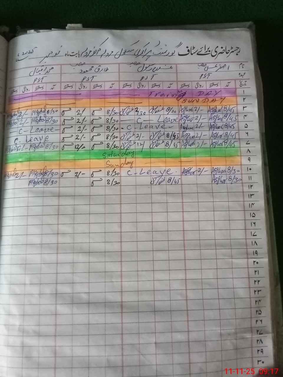 | CNIC | Full Name | Designation | R/C | Absence During Last Calender Month |