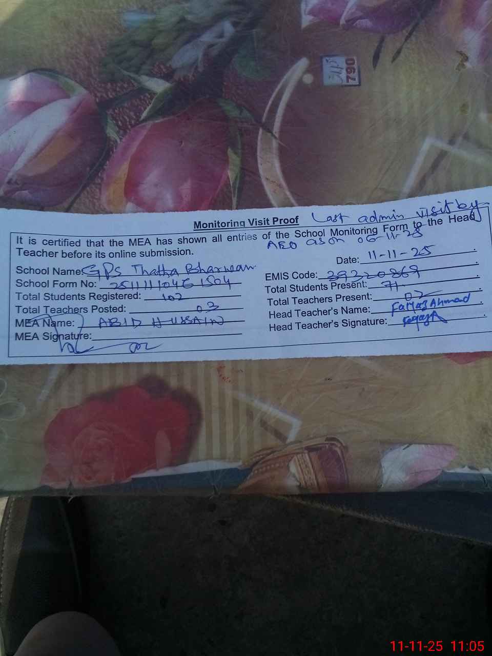 | EMIS Code: 39320869 | Name of School: GPS THATHA BHARWANA | |||