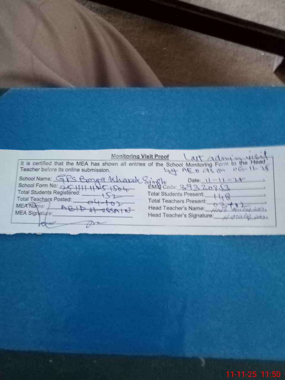 | EMIS Code: 39320953 | Name of School: GPS BONGA KHARAK SINGH | |||