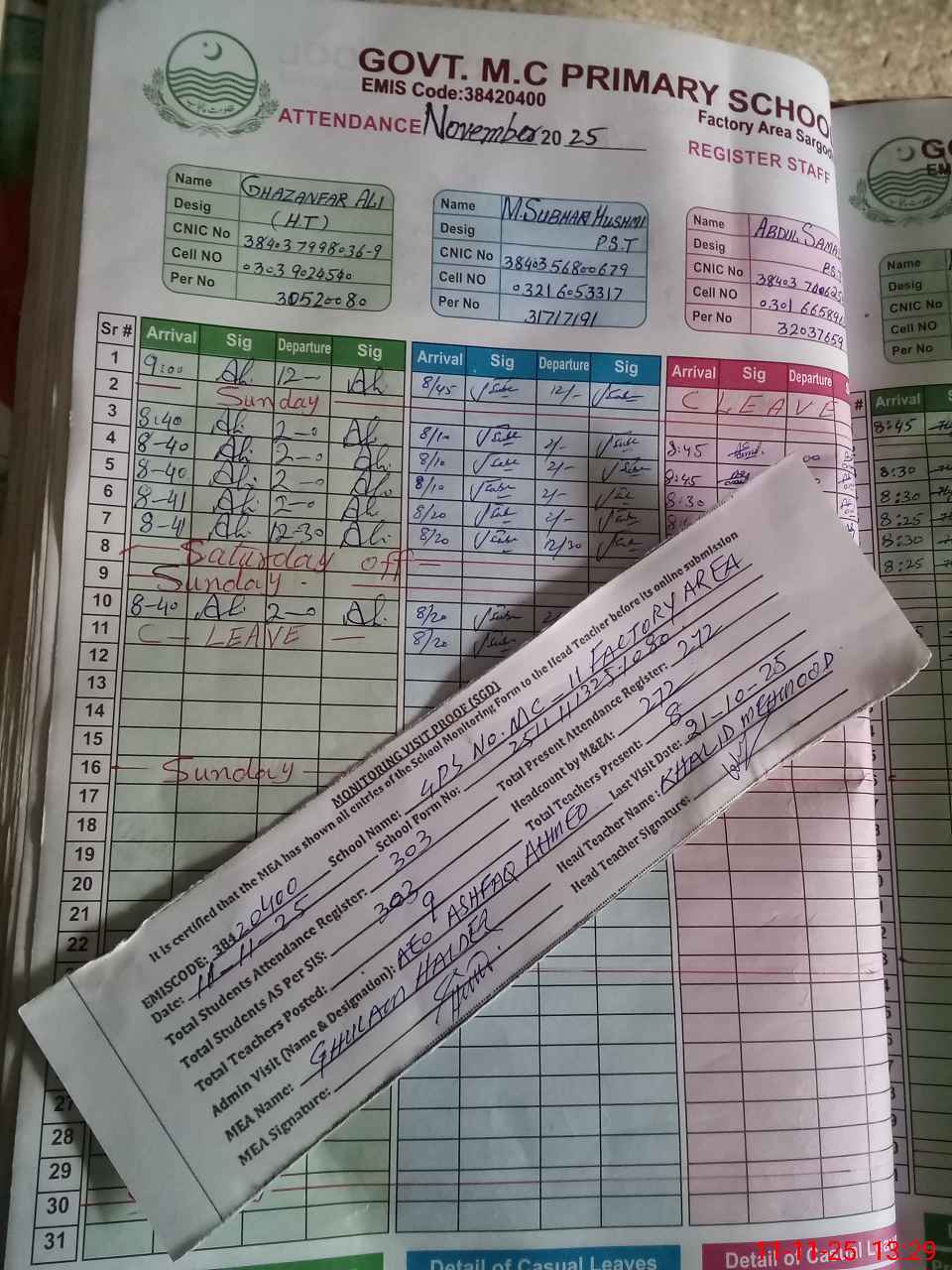 | EMIS Code: 38420400 | Name of School: GPS MC NO. 11 FACTORY AREA SARGODHA | |||