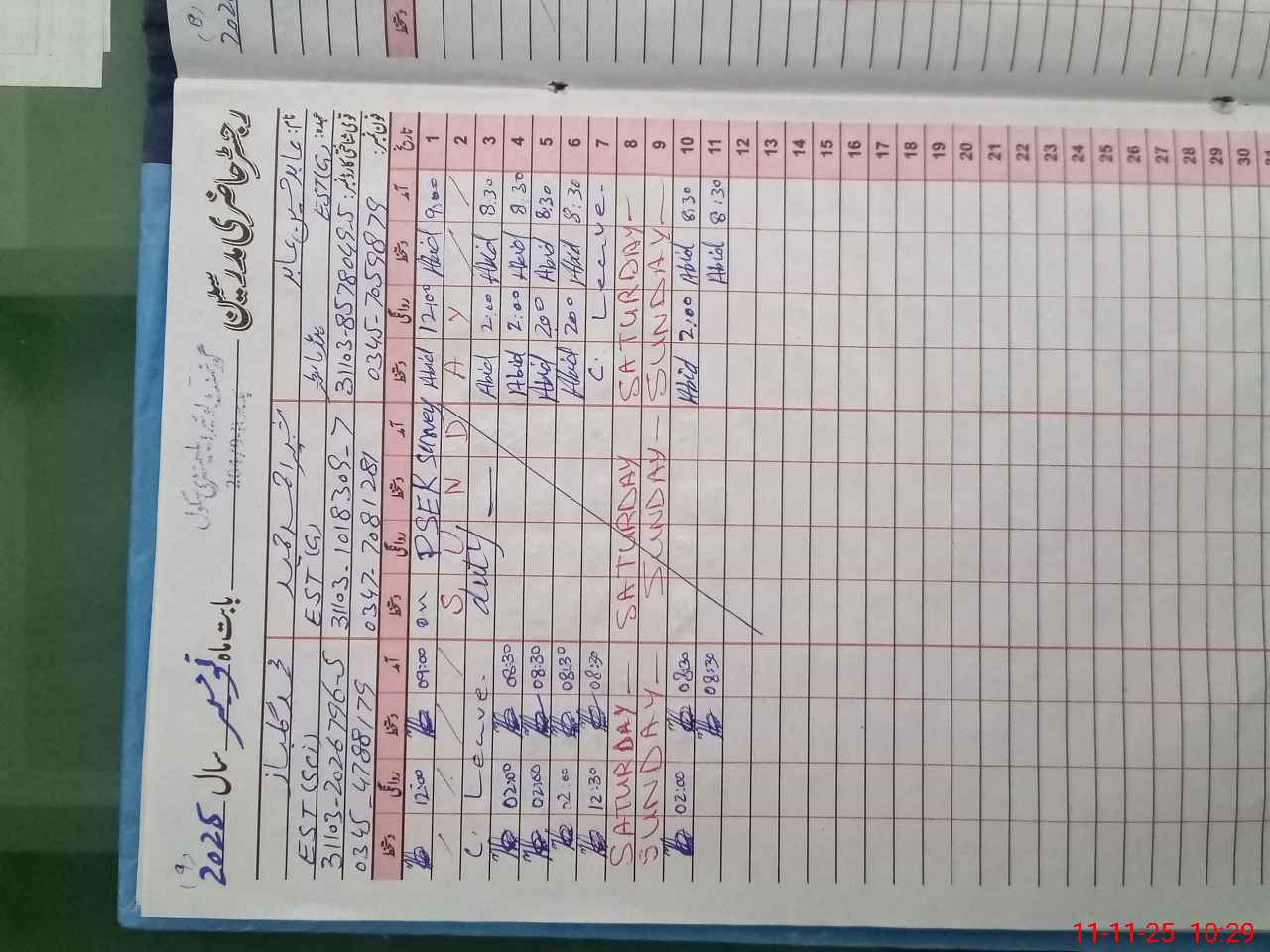 | Leave | Duty | Absent | Maternity | Medical | Ex- Pak |