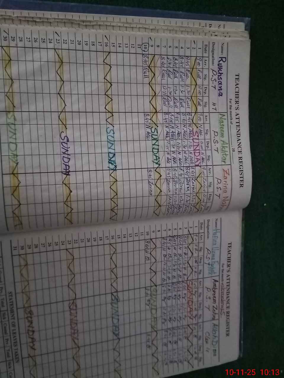 | CNIC | Full Name | Designation | R/C | Absence During Last Calender Month |