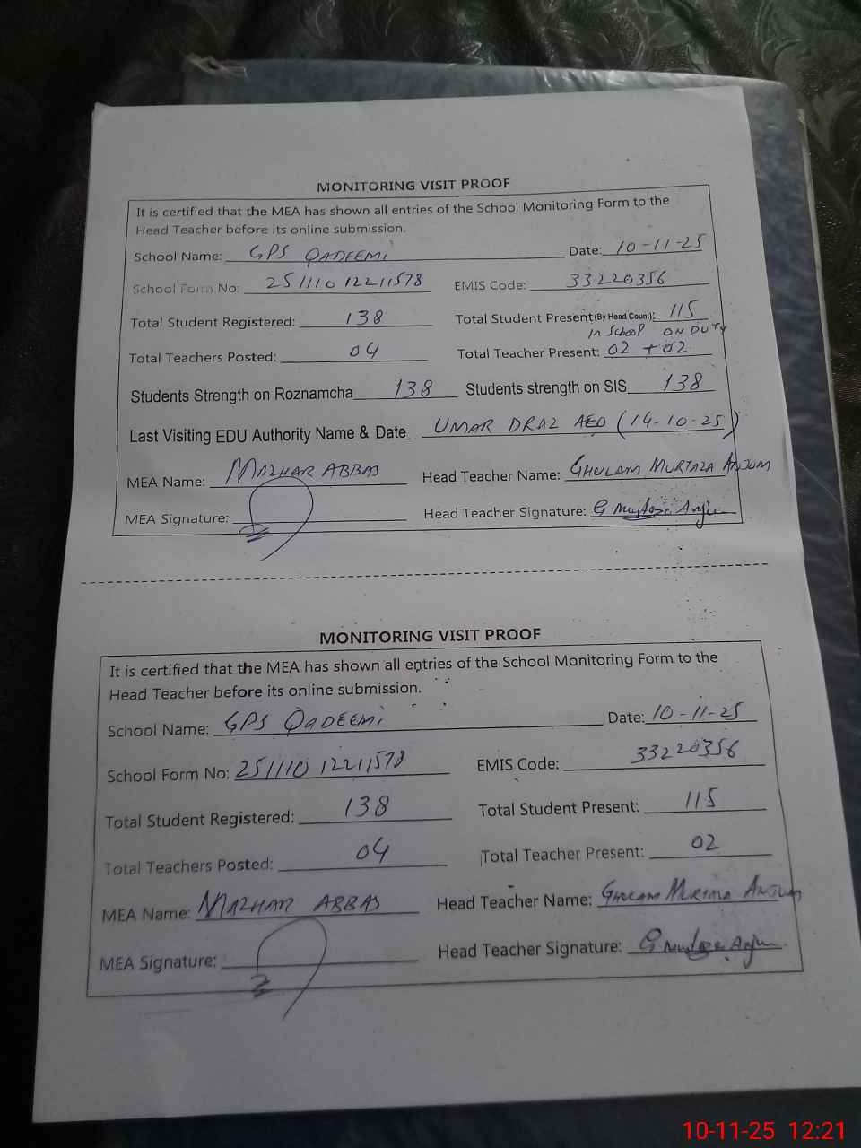 | EMIS Code: 33220356 | Name of School: GPS QADIMI | |||