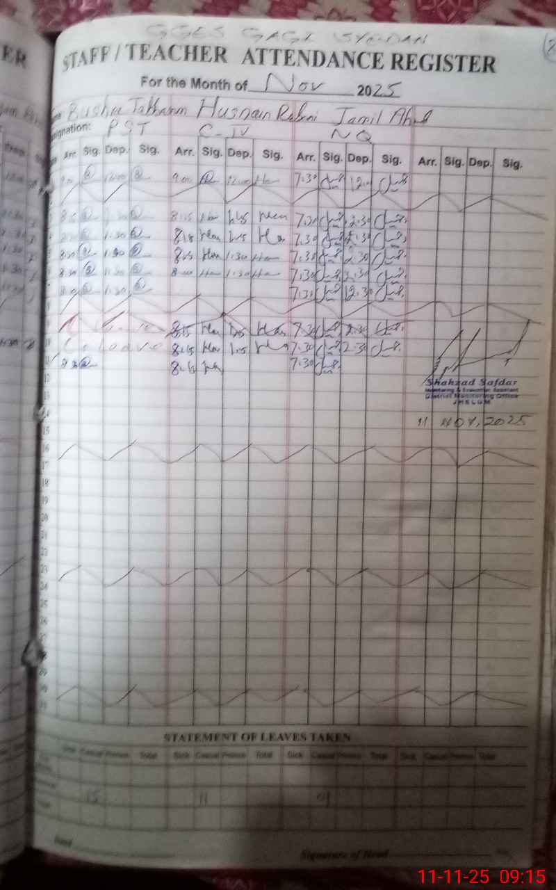 | Monitoring Date: 11-11-2025 | Start Time: 11-11-2025 09:08 AM | End Time: 11-11-2025 09:51 AM | Name of MEA: Sh**** Sa**** | |
