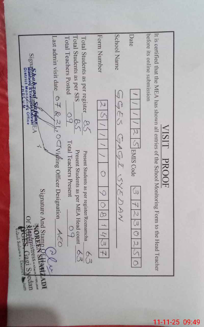 | EMIS Code: 37230250 | Name of School: GGES GAGI SYEDAN | |||