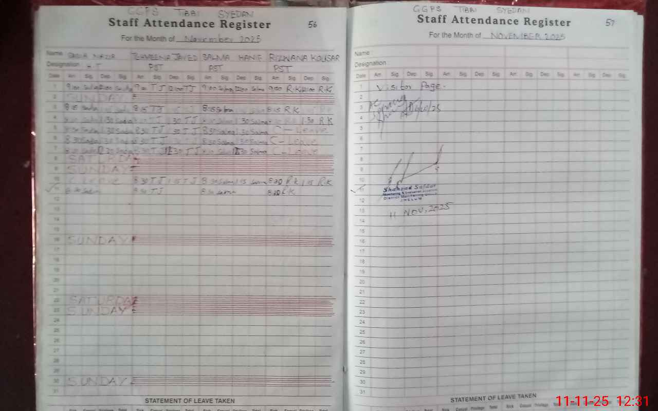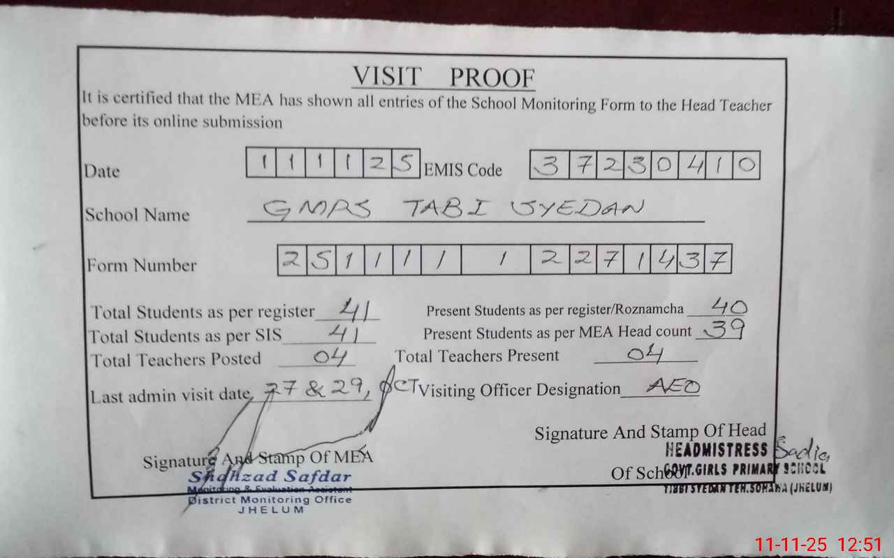 | Attendance Register | Head Teacher | MEA with School | Visit Proof |