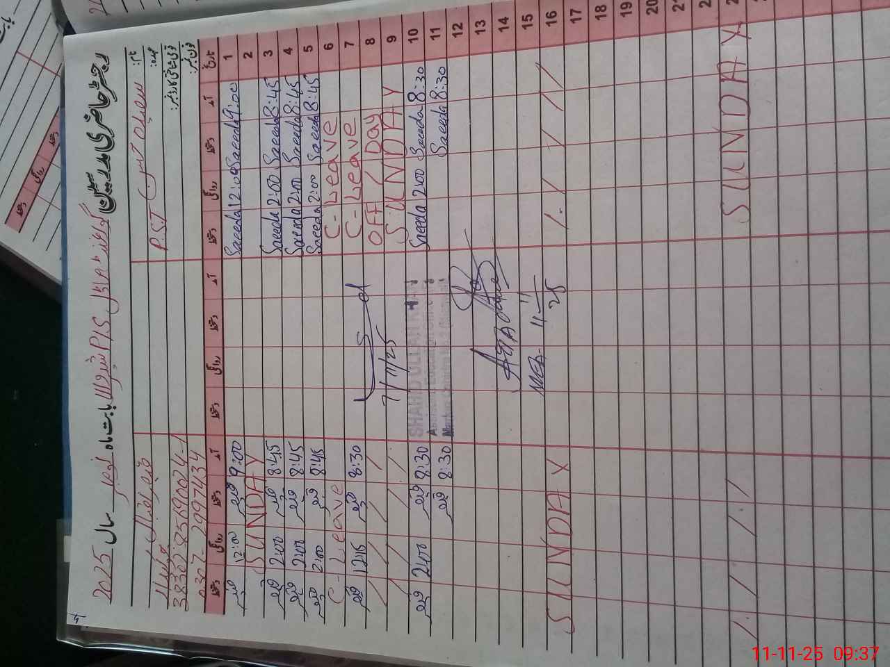 | CNIC | Full Name | Designation | R/C | Absence During Last Calender Month |