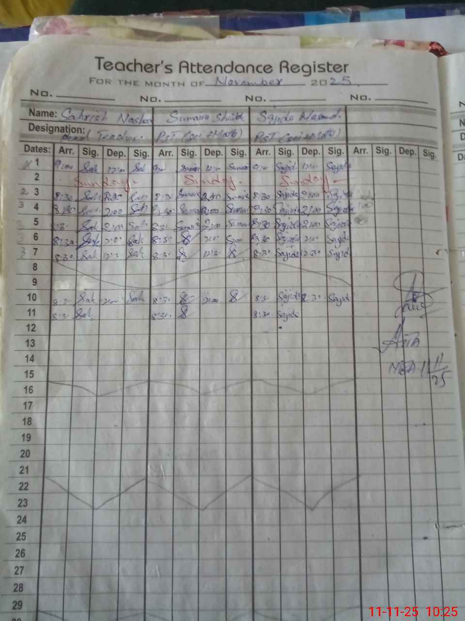 | Monitoring Date: 11-11-2025 | Start Time: 11-11-2025 09:59 AM | End Time: 11-11-2025 11:04 AM | Name of MEA: AT**** MU**** | |