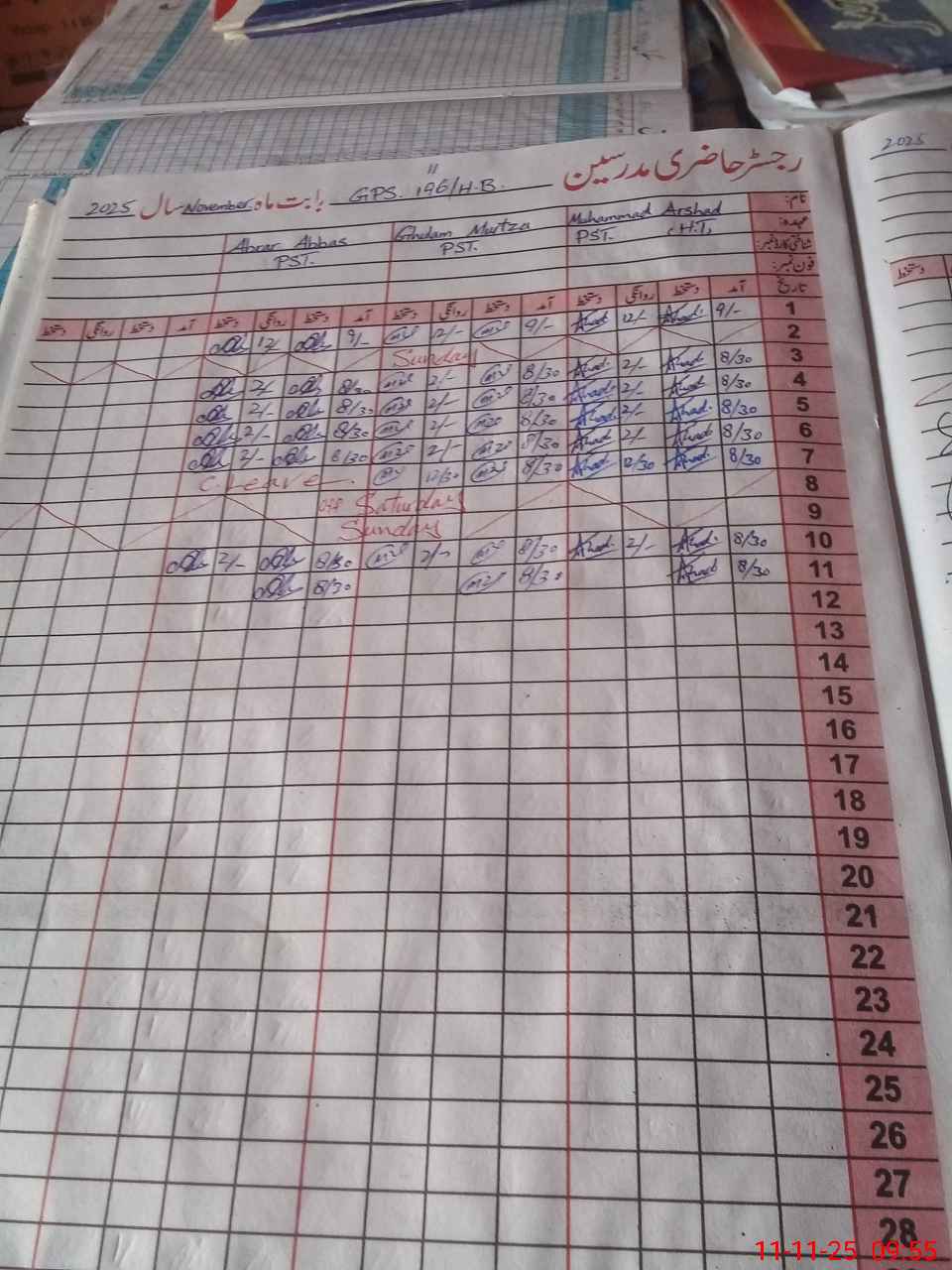 | CNIC | Full Name | Designation | R/C | Absence During Last Calender Month |