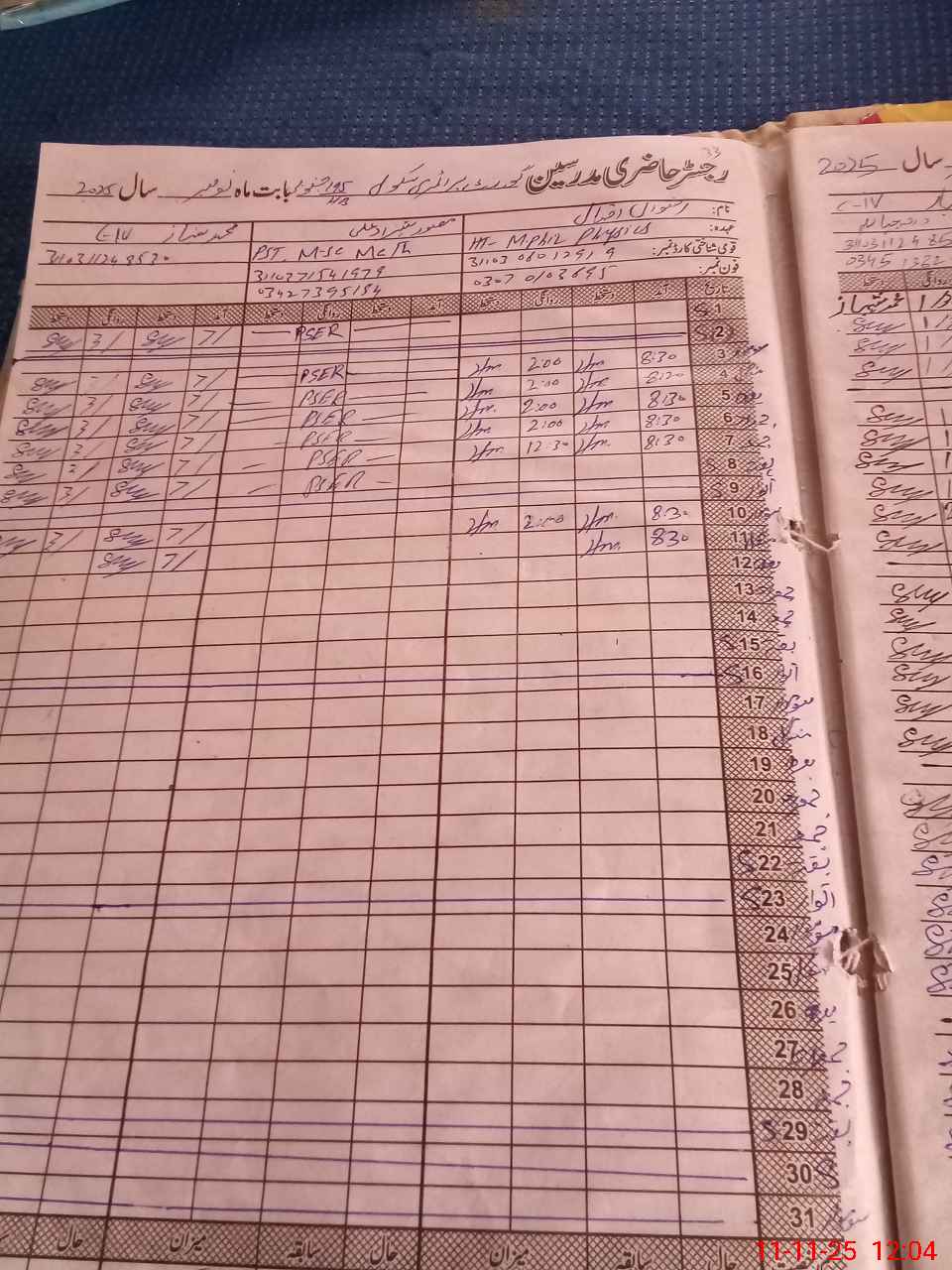 | CNIC | Full Name | Designation | R/C | Absence During Last Calender Month |