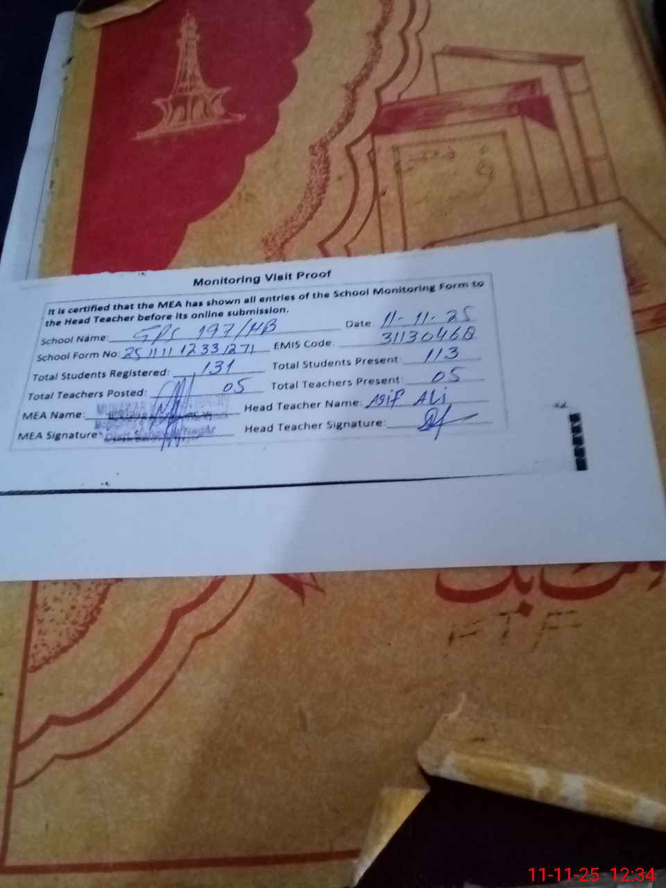 | EMIS Code: 31130468 | Name of School: GPS CHAK NO. 197 HB NO. 1 (A&T) | |||