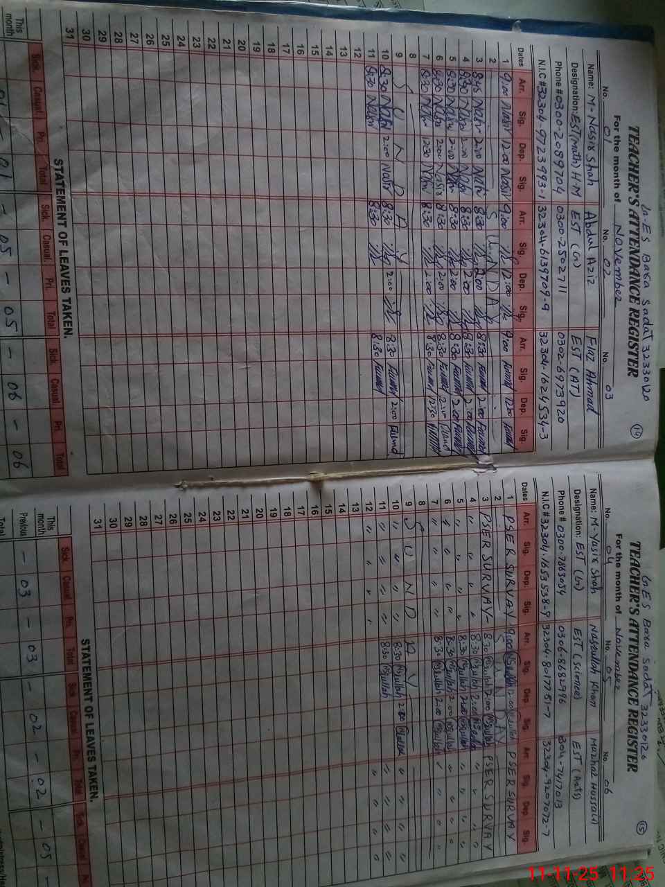 | CNIC | Full Name | Designation | R/C | Absence During Last Calender Month |