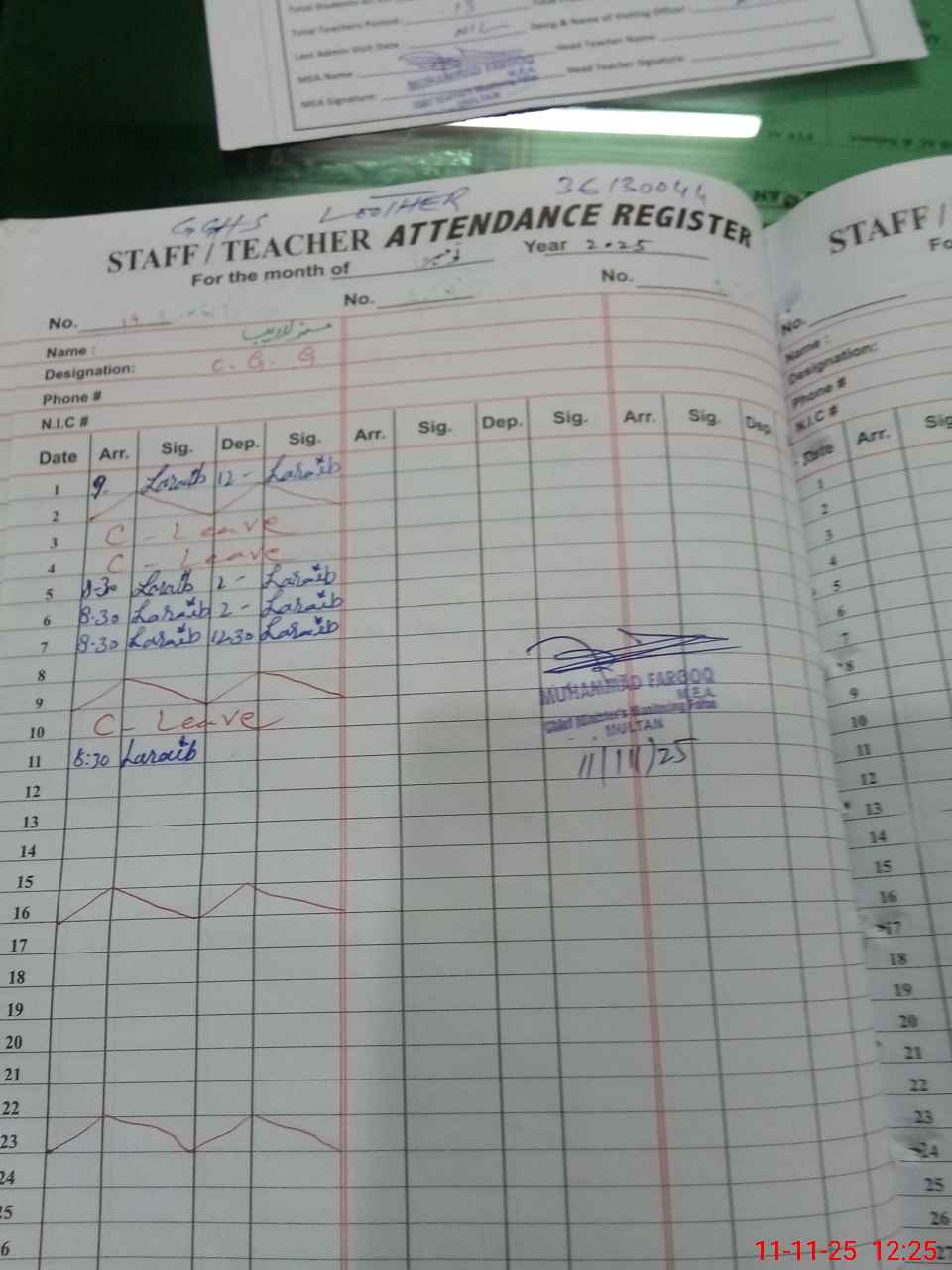 | CNIC | Full Name | Designation | R/C | Absence During Last Calender Month |