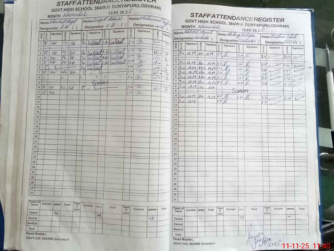 | Monitoring Date: 11-11-2025 | Start Time: 11-11-2025 11:08 AM | End Time: 11-11-2025 11:44 AM | Name of MEA: MU**** JA**** AK**** | |