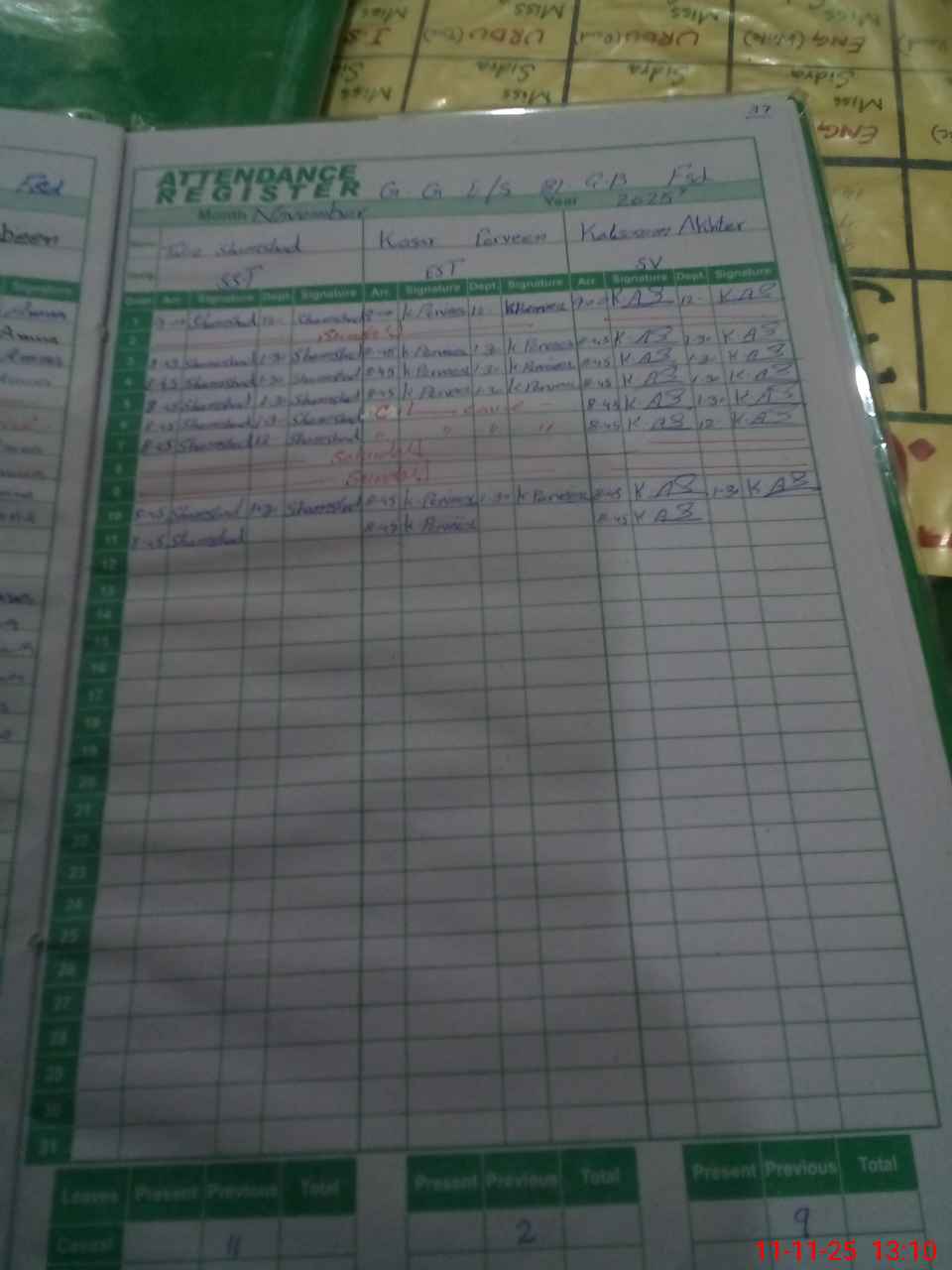 | No. of Students Present - Female | 0 | 0 | 15 | 17 | 19 | 16 | 18 | 13 | 13 | 14 | 23 | 148 | ||||