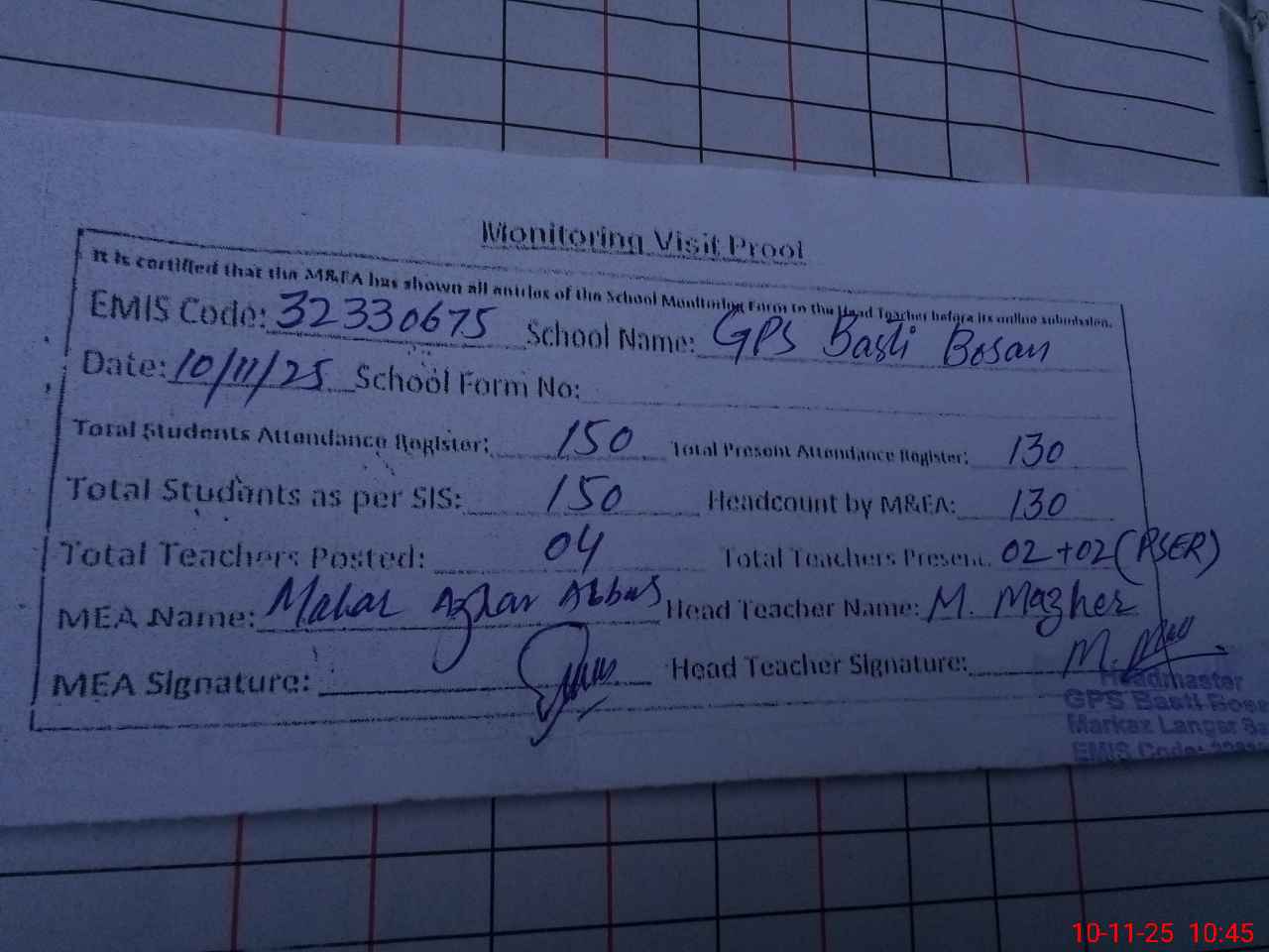 | EMIS Code: 32330675 | Name of School: GPS BASTI BOSAN | |||