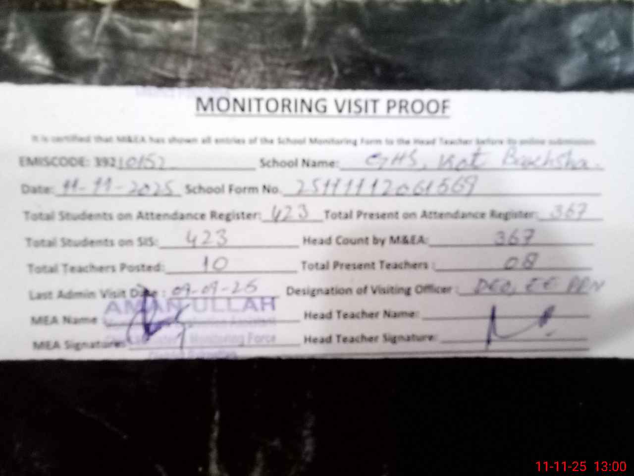 | EMIS Code: 39210152 | Name of School: GHS KOT BAKHSHA | |||