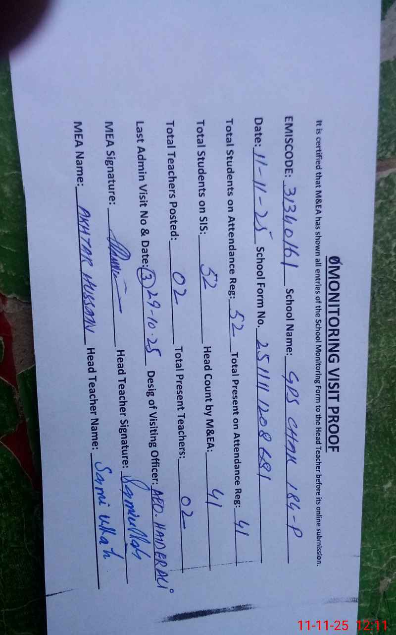 | EMIS Code: 31340161 | Name of School: GPS CHAK NO 184/P | |||