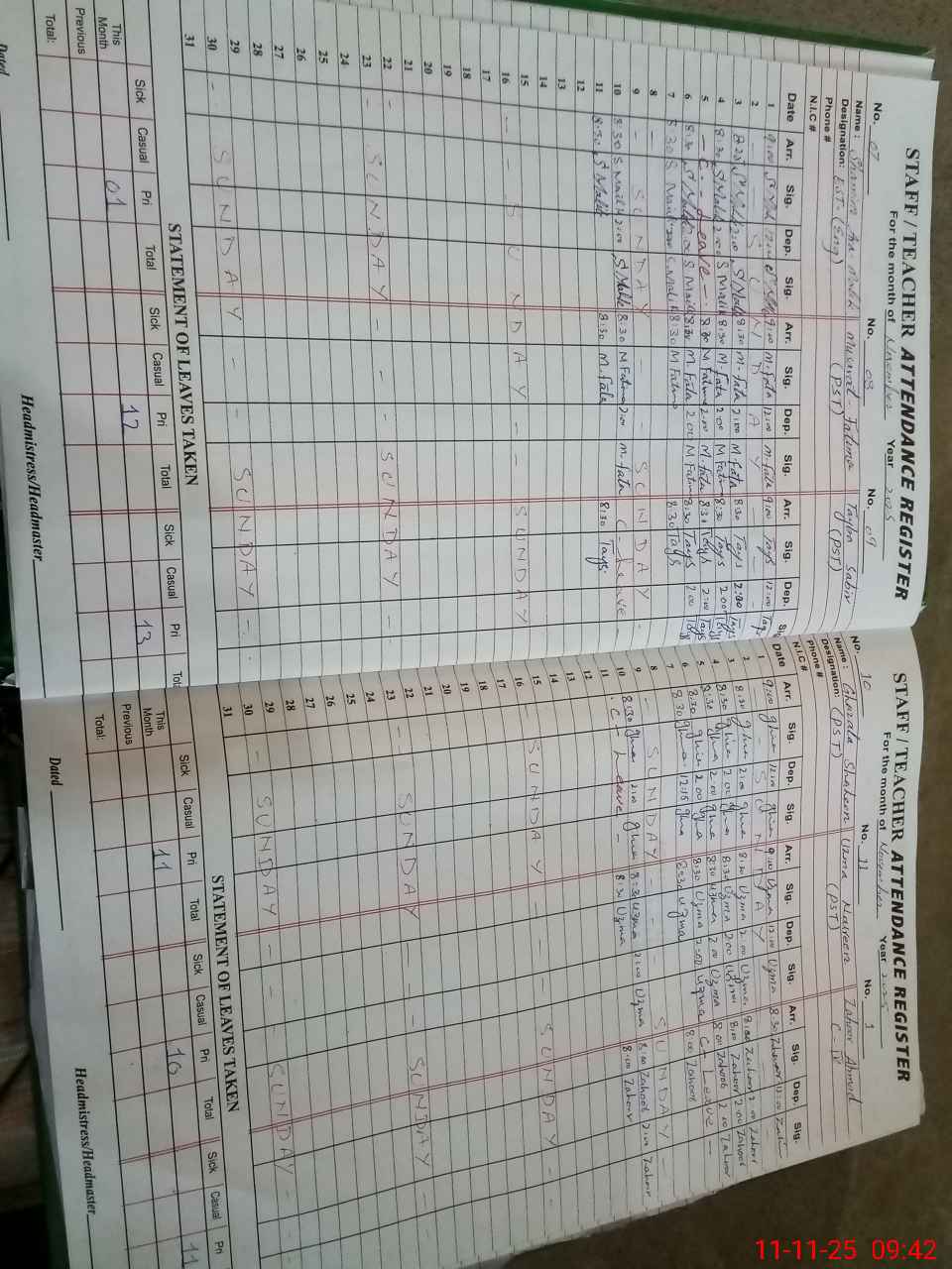 | CNIC | Full Name | Designation | R/C | Absence During Last Calender Month |
