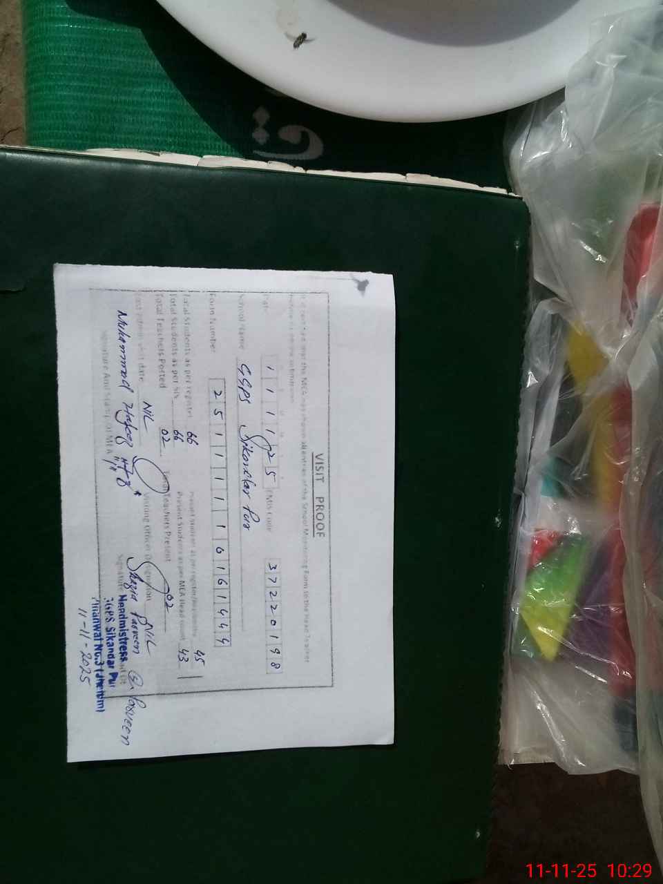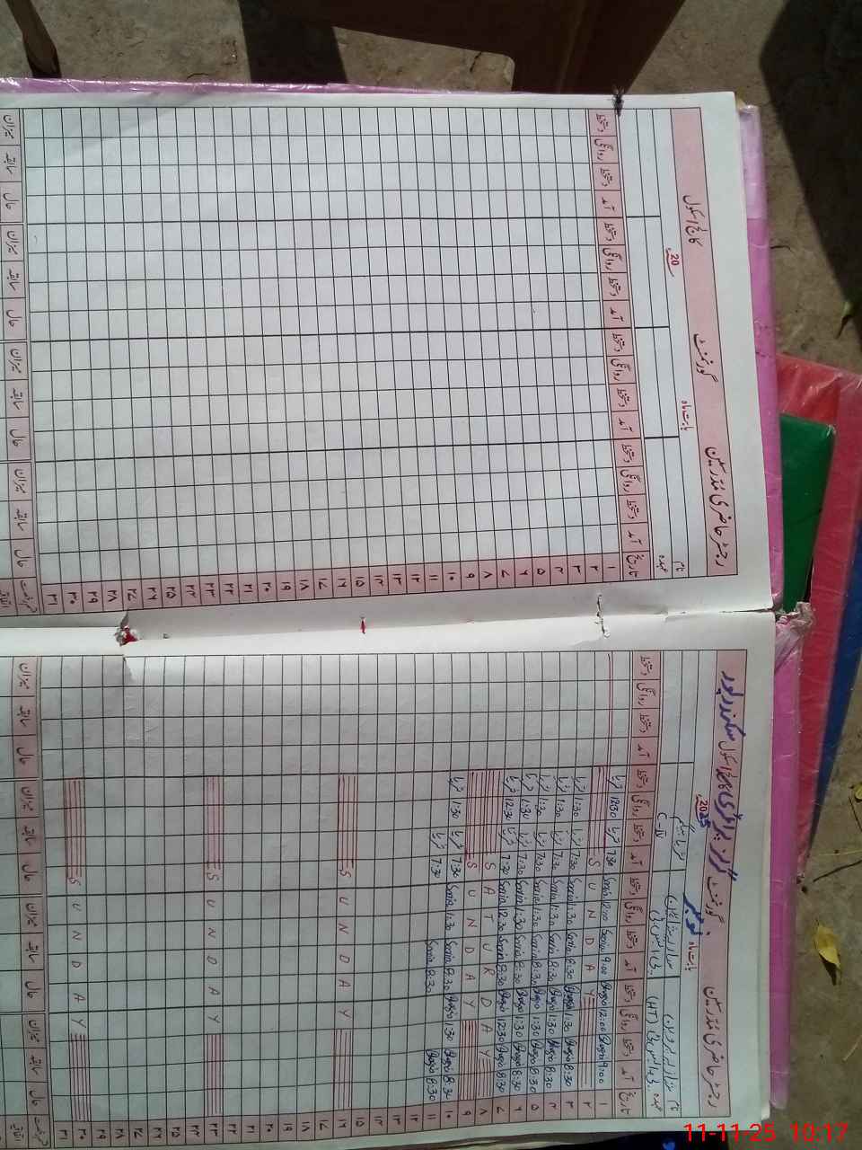 | Total no. of Classrooms: 4 No. of Classrooms Used for Teaching: 4 No. of Classrooms Storing Old Furniture, FTBs, etc: 0Comments if Any: Sir PST teacher Saria come in school with her own little children with her no Aya for care children she details students for her children care picture is available with students and teacher children Not complete students attendance register and daily at |