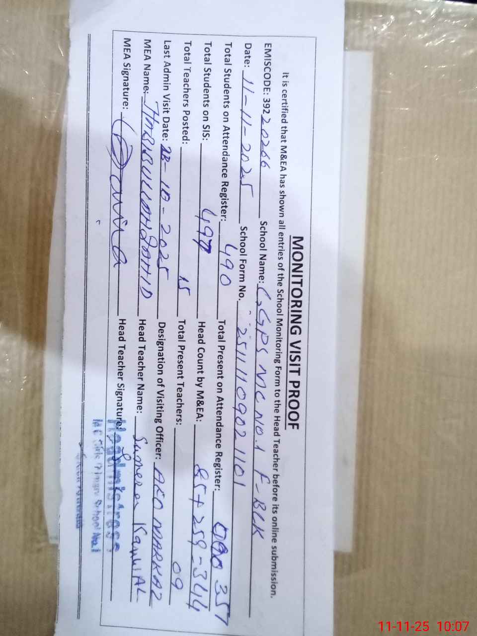 | EMIS Code: 39220266 | Name of School: GGPS MC NO. 1 F BLOCK ARIF WALA | |||