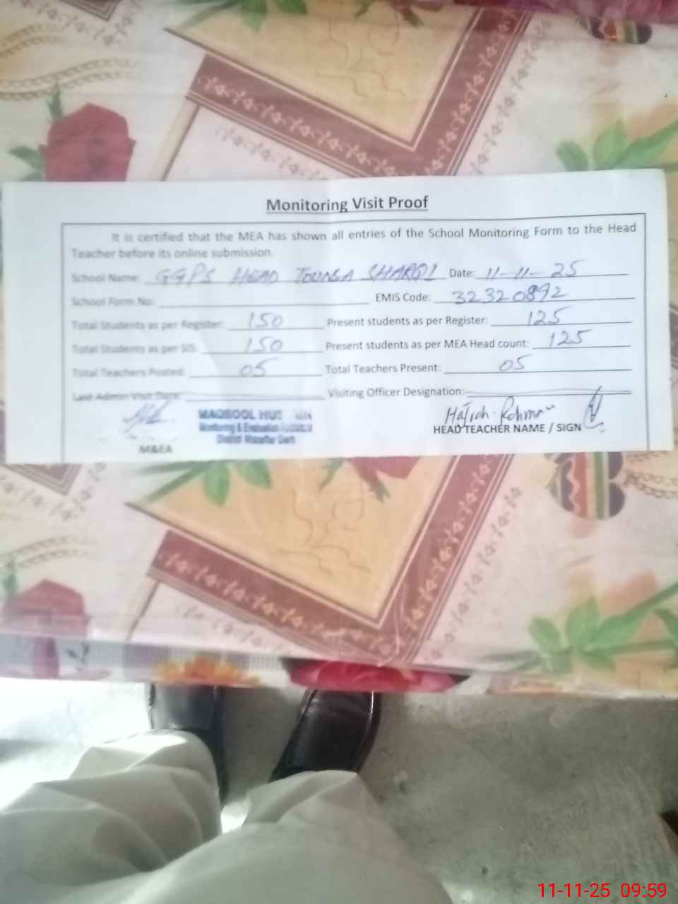 | EMIS Code: 32320892 | Name of School: GGPS HEAD TAUNSA SHARIQ SIDE | |||