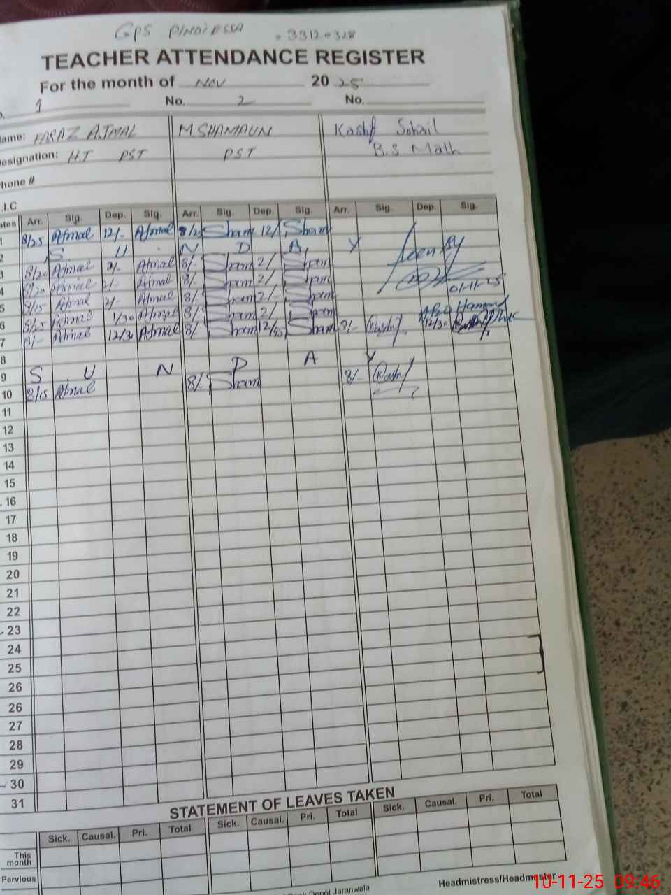 | Name: FA**** AJ**** Designation: (School Headmaster's/Headmistress's) PST Phone/Cell Number: 03**** |