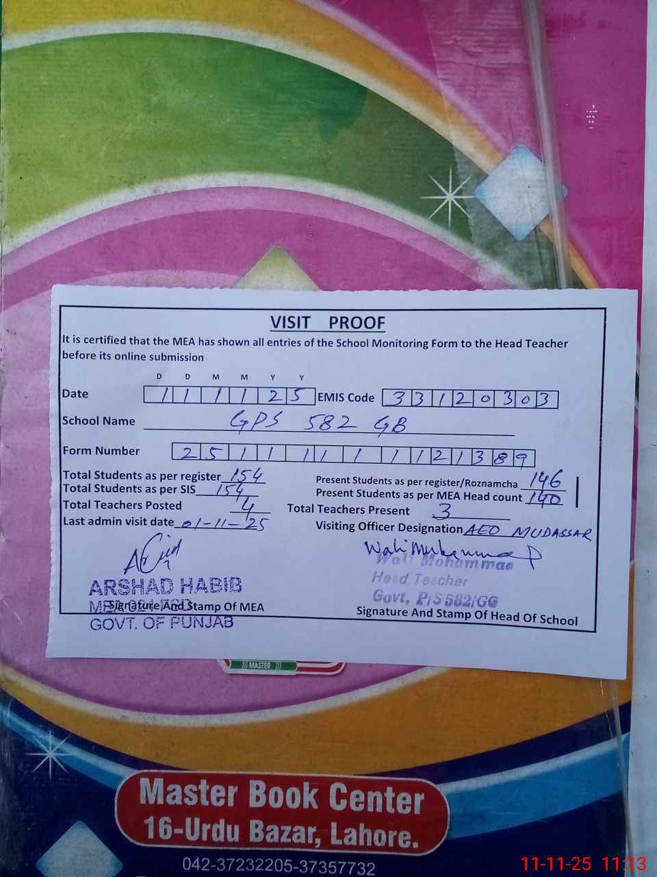 | Attendance Register | Head Teacher | MEA with School | Visit Proof |