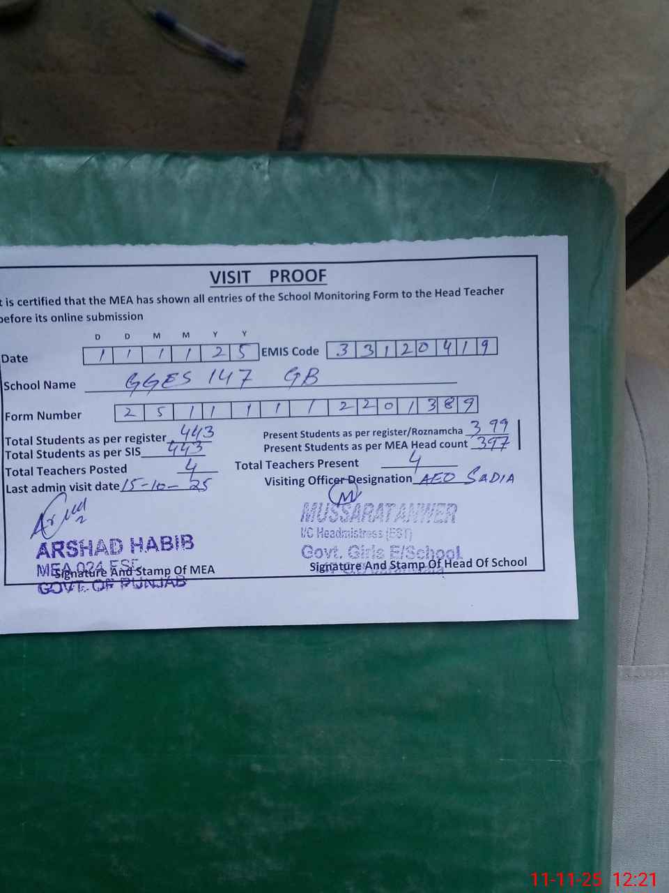 | EMIS Code: 33120419 | Name of School: GGES CHAK 147 GB LUNDIANWALA | |||