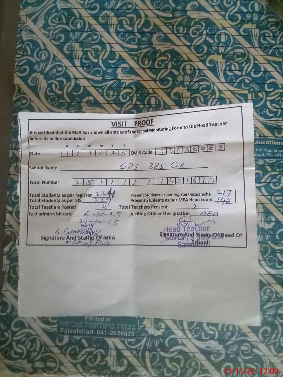 | EMIS Code: 33130083 | Name of School: GPS CHAK 385 GB SAMUNDRI | |||