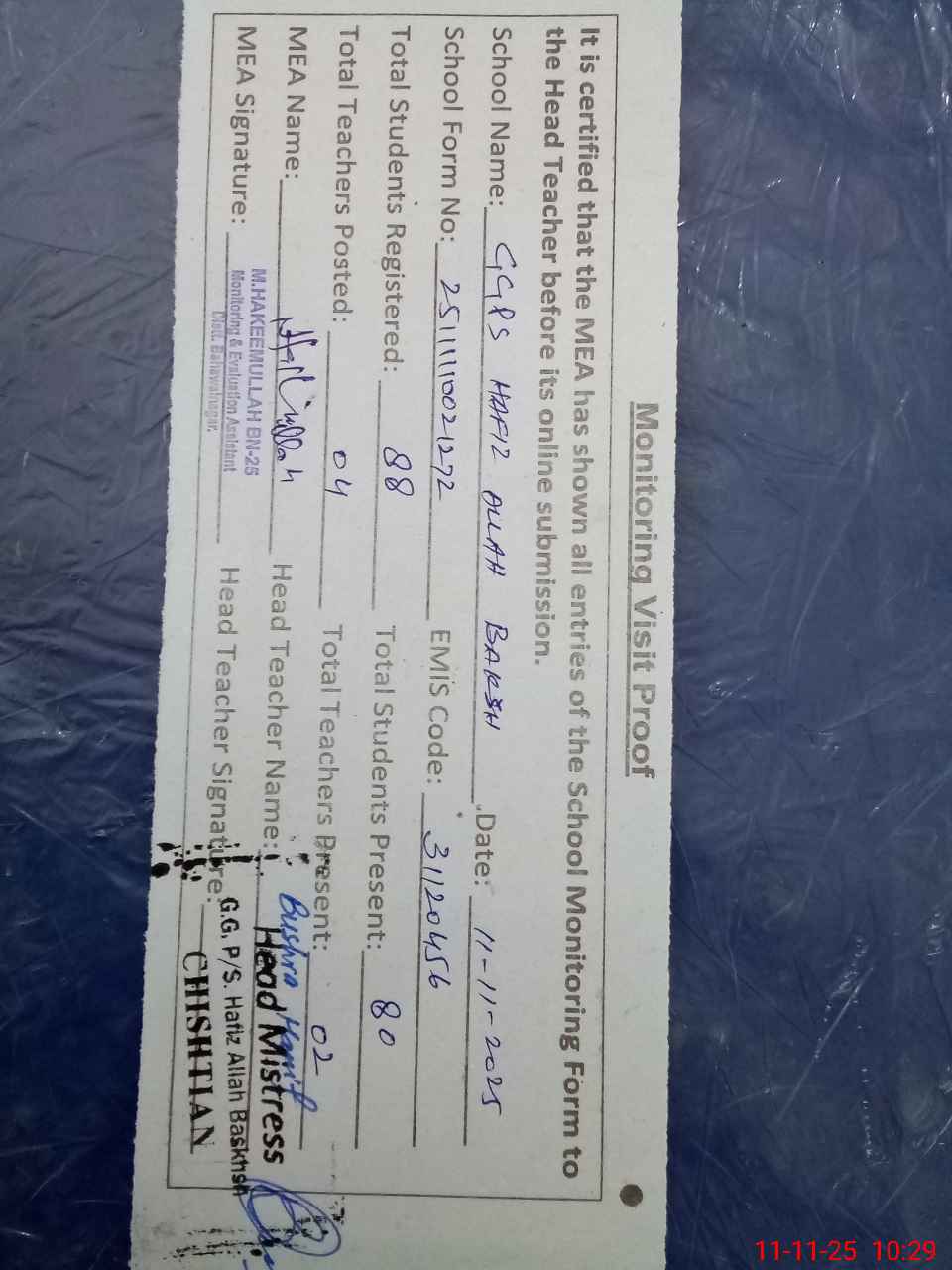 | EMIS Code: 31120456 | Name of School: GGPS HAFIZ ALLAH BUKHASH | |||