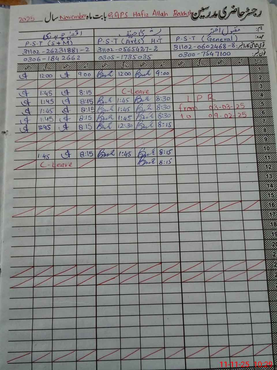 | Name: Bu**** Ha**** Designation: (School Headmaster's/Headmistress's) PST Phone/Cell Number: 03**** |