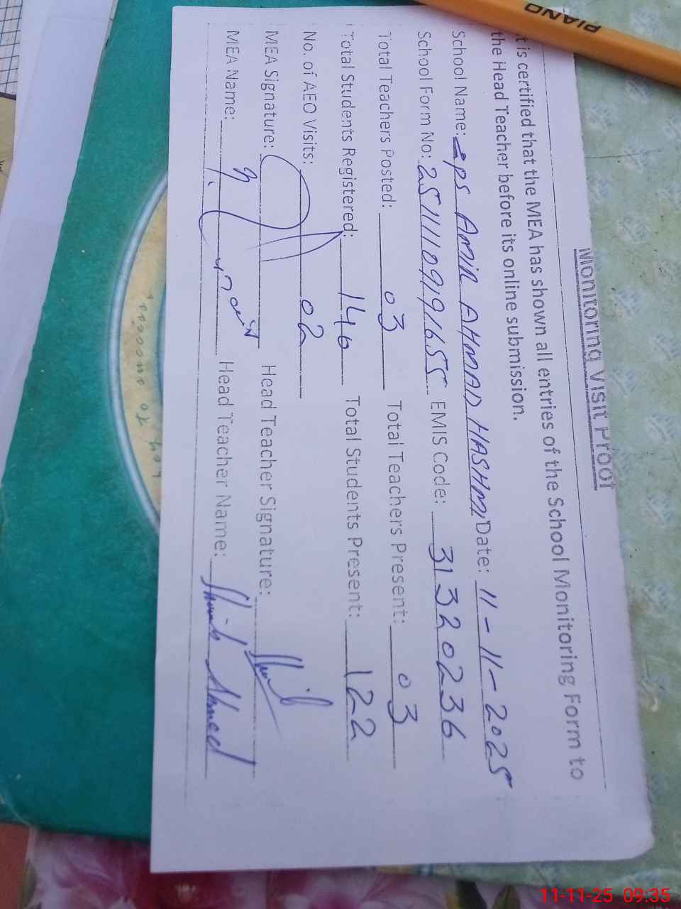 | EMIS Code: 31320236 | Name of School: GPS AMIR AHMAD HASHMI | |||