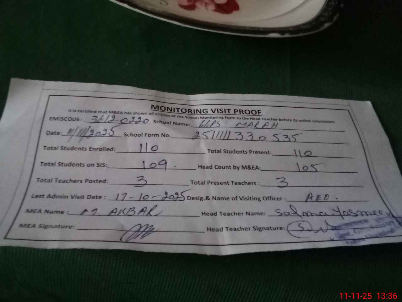 | EMIS Code: 36120230 | Name of School: GGPS MARAHA BASTI CHAH DARKHAN WALA SHUJABAD | |||