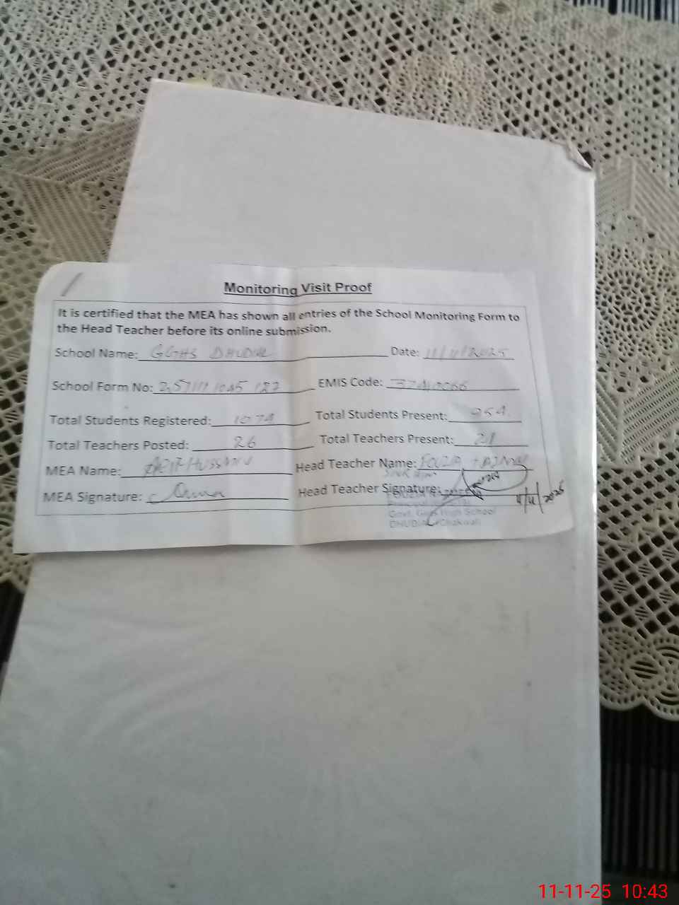 | EMIS Code: 37410066 | Name of School: GGHS DHUDIAL | |||