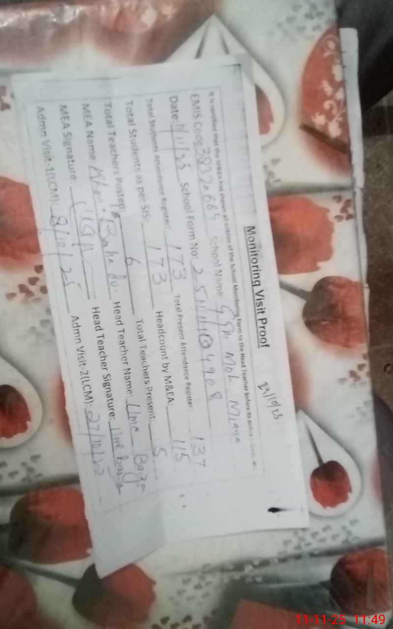 | Attendance Register | Head Teacher | MEA with School | Visit Proof |
