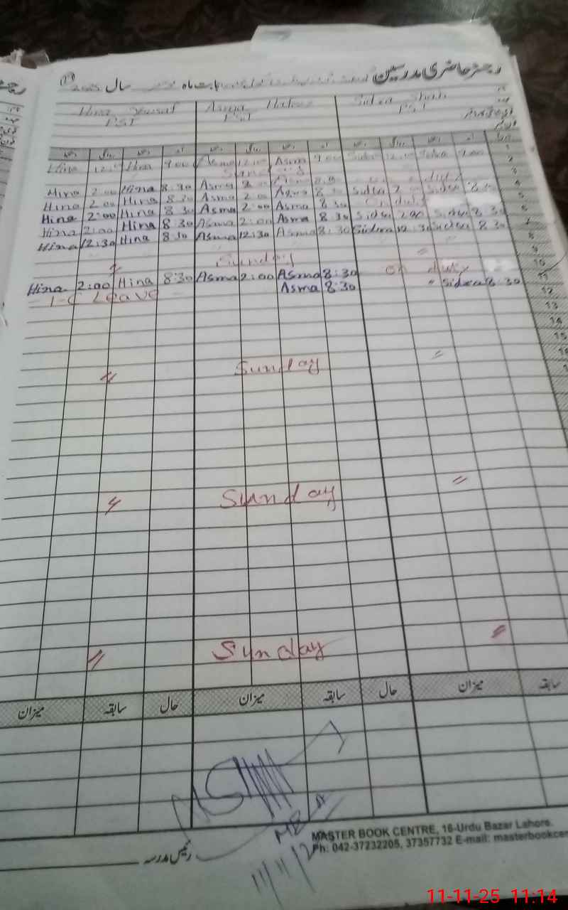 | CNIC | Full Name | Designation | R/C | Absence During Last Calender Month |