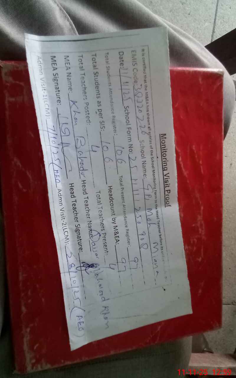 | Attendance Register | Head Teacher | MEA with School | Visit Proof |