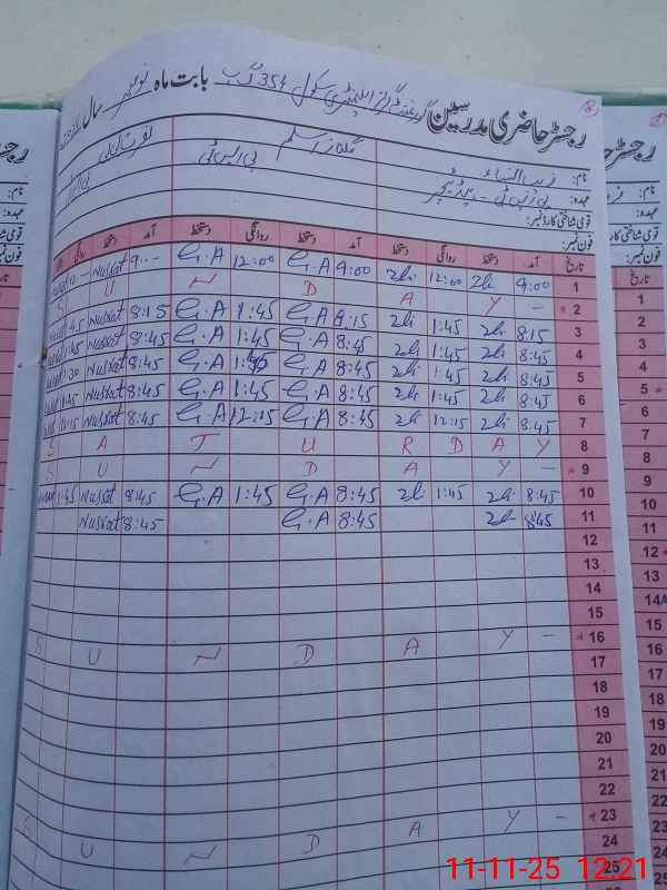 | CNIC | Full Name | Designation | R/C | Absence During Last Calender Month |