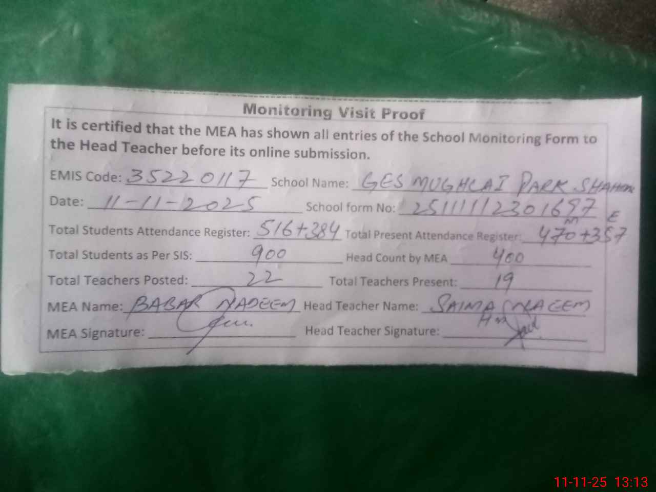 | EMIS Code: 35220117 | Name of School: GES MUGHLIA PARK SHAHDARA LAHORE | |||